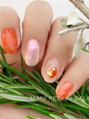 ビタミンカラーのニュアンスデザインとオーロラミラーネイル☆マット仕上げもMIXしてメリハリを♪