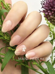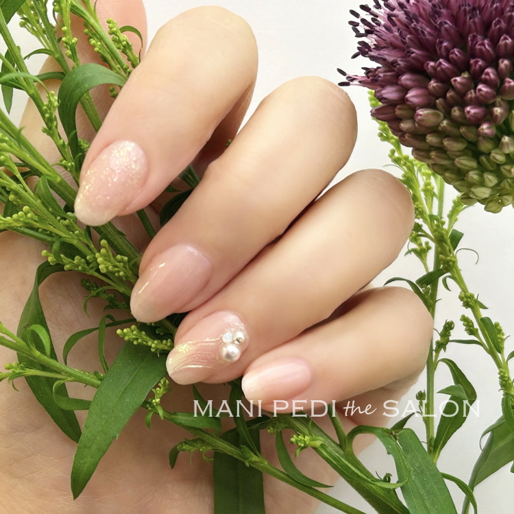 シアーピンクにラインニュアンスデザインとオーロラミラーネイル☆