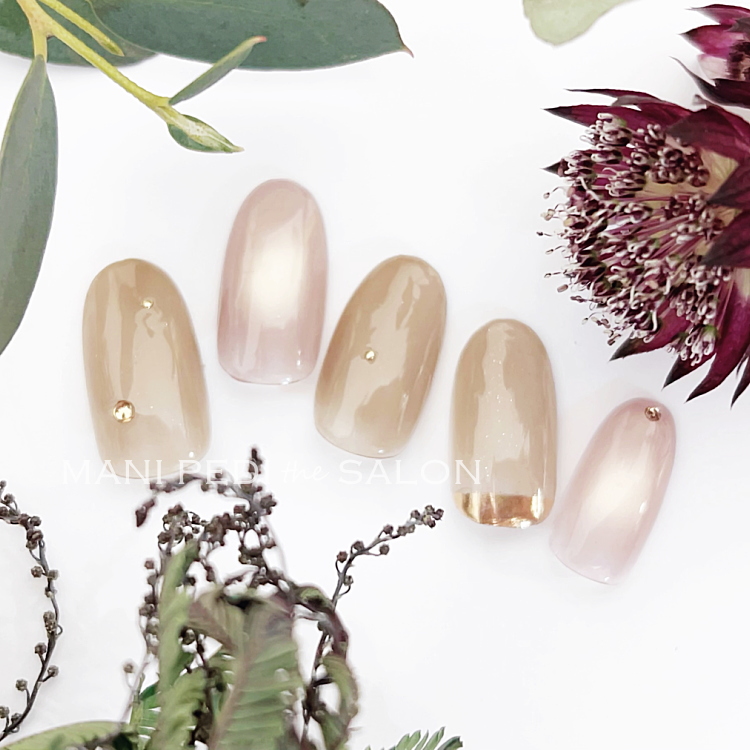クリアモカブラウンカラーと透け感のあるピンクベージュ系マグネットネイル☆