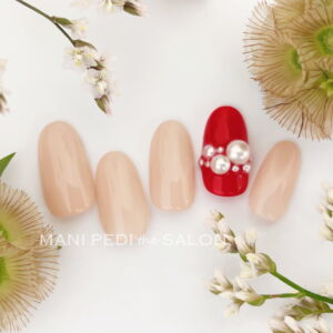 1本の赤に大小のパールを並べたポイントデザイン☆